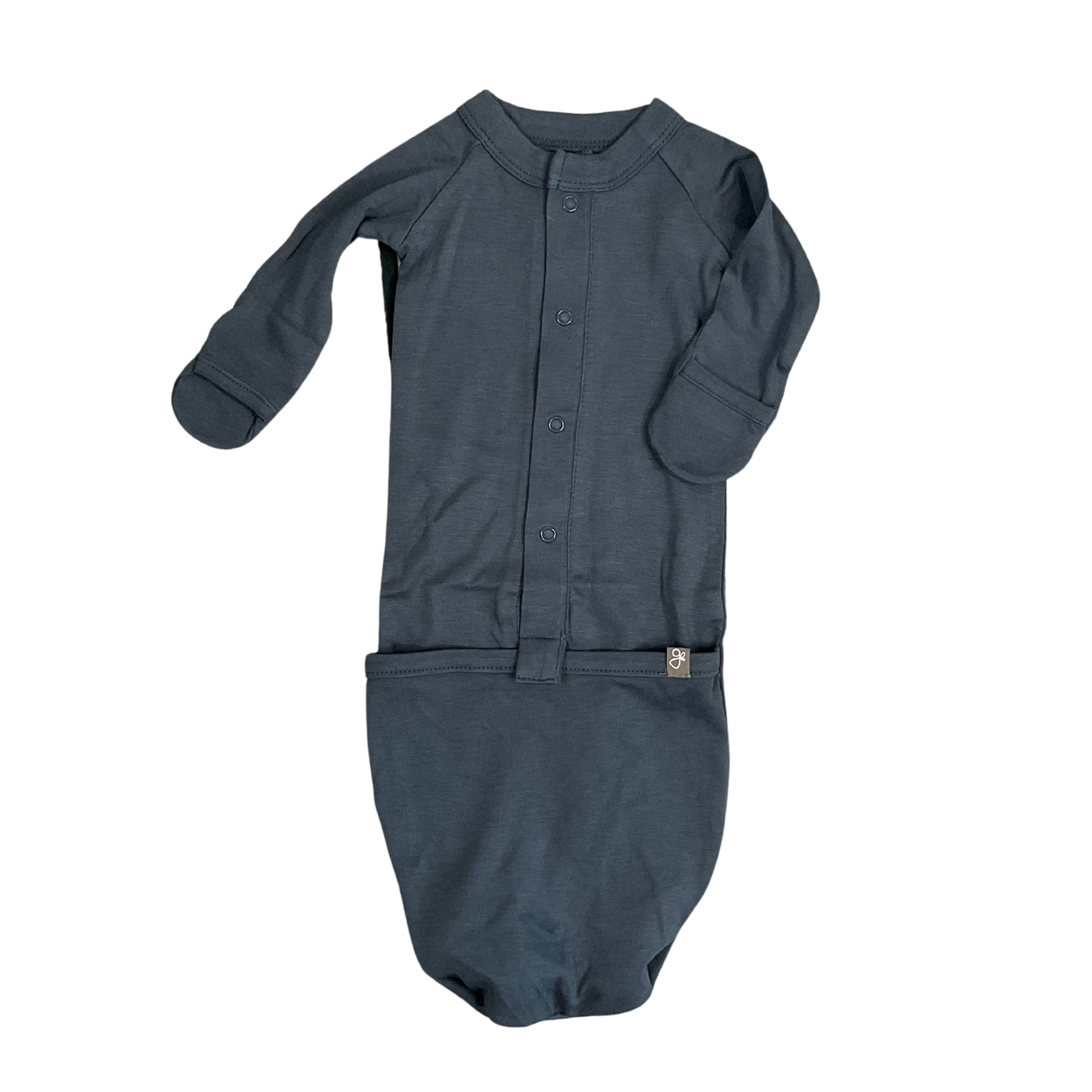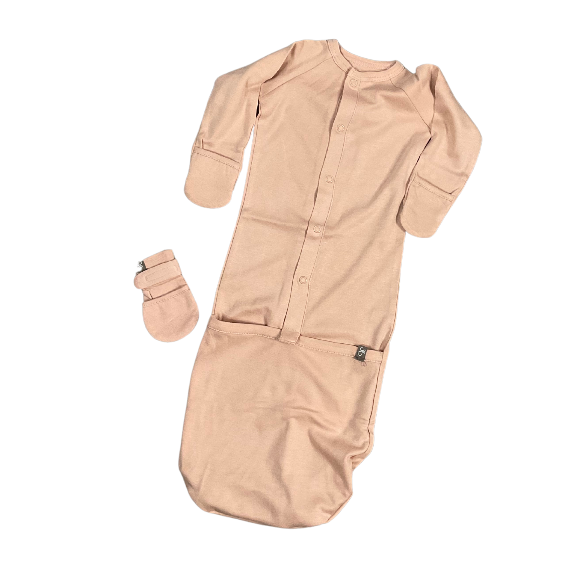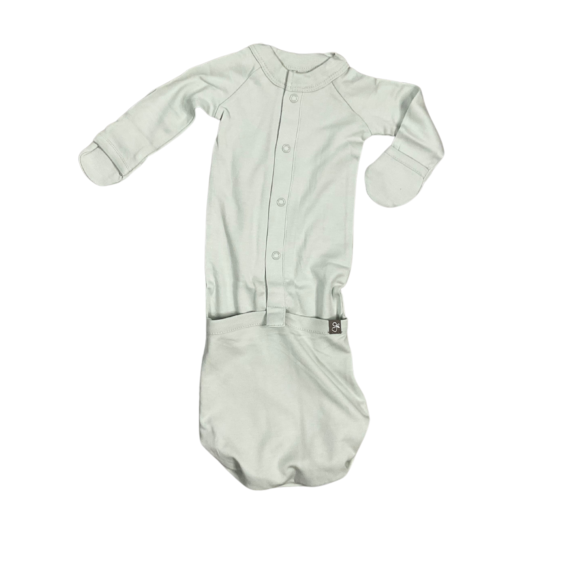 - baby sleeper and infant gown with an easy flip to change bottom pocket make diaper changes a snap (literally)