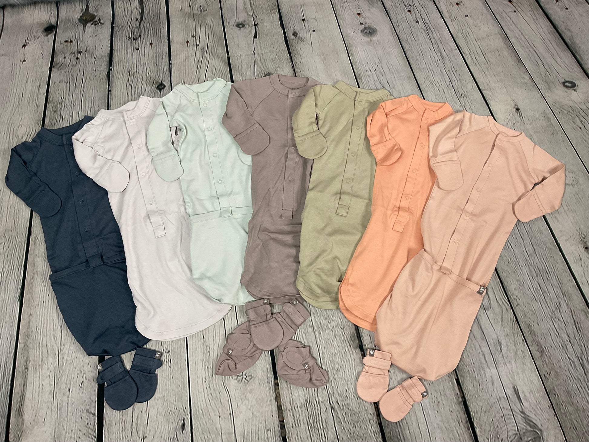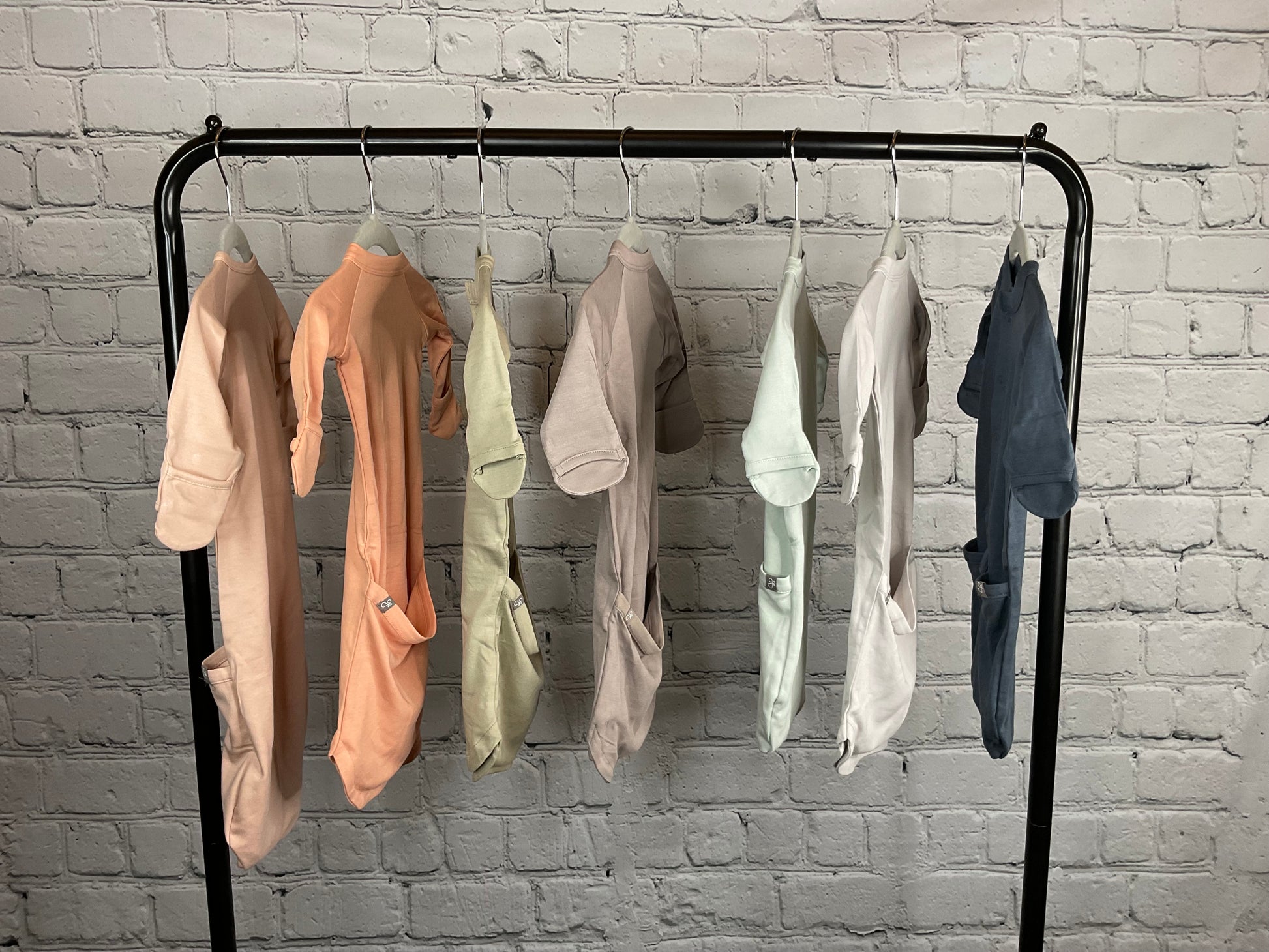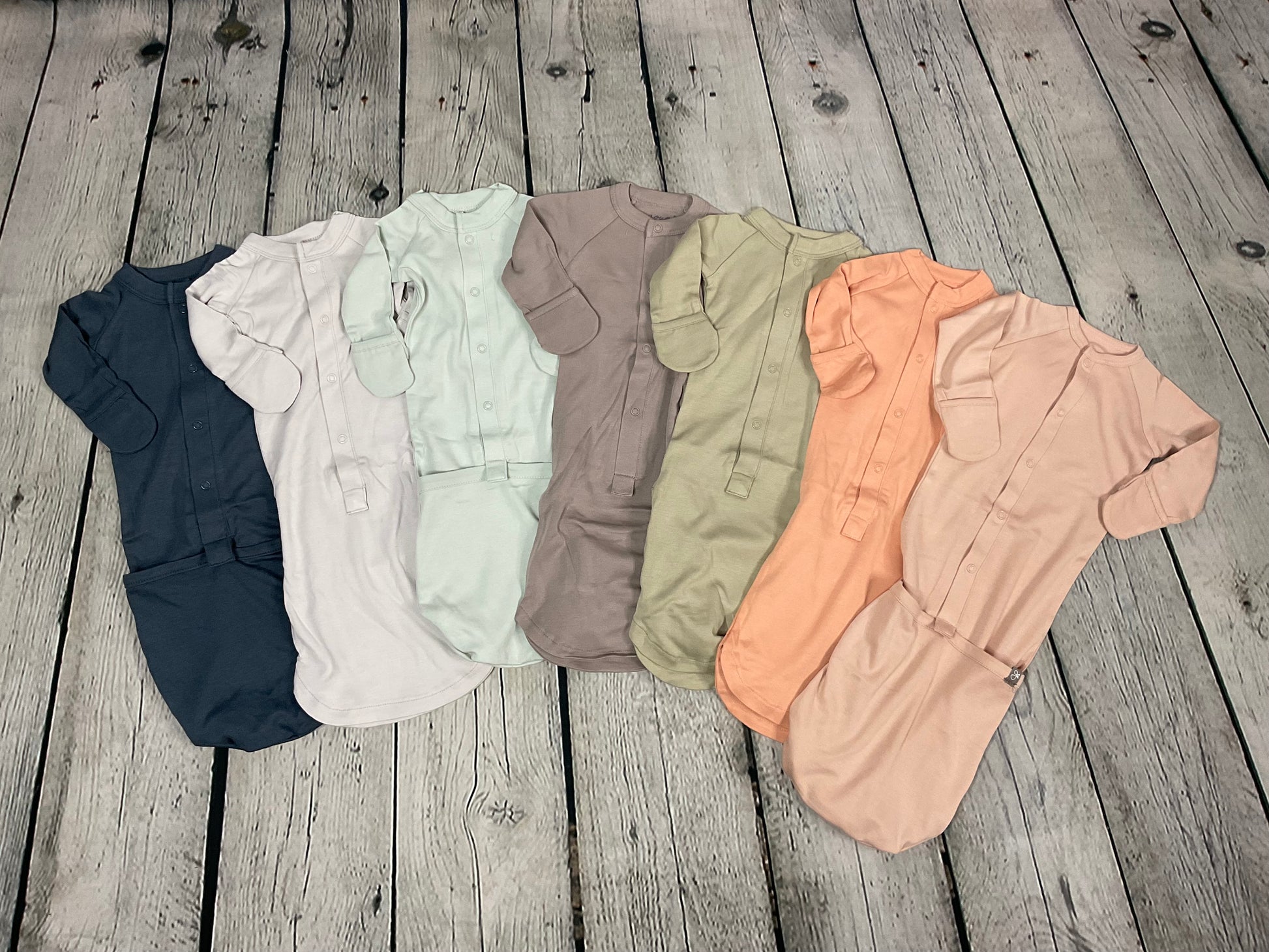 - baby sleeper and infant gown with an easy flip to change bottom pocket make diaper changes a snap (literally)
