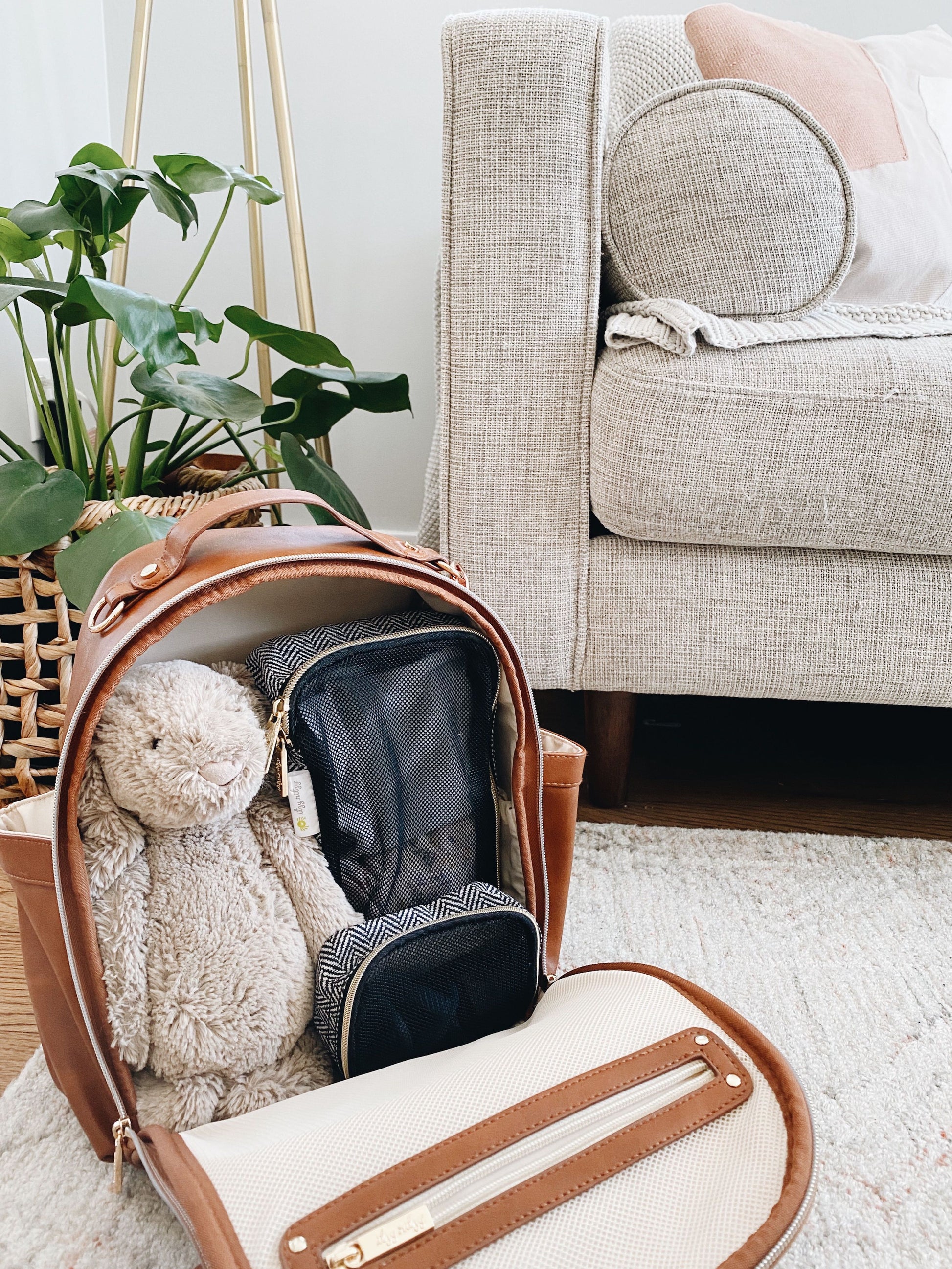 Don’t let its size fool you—the mini backpack has eight pockets (four internal and four external) and includes a matching changing pad. It also features Itzy Ritzy’s signature rubber feet that protect the base of the bag from dirty surfaces and wear and tear. The comfortable backpack straps allow you to be hands-free and ready to explore with your little one!