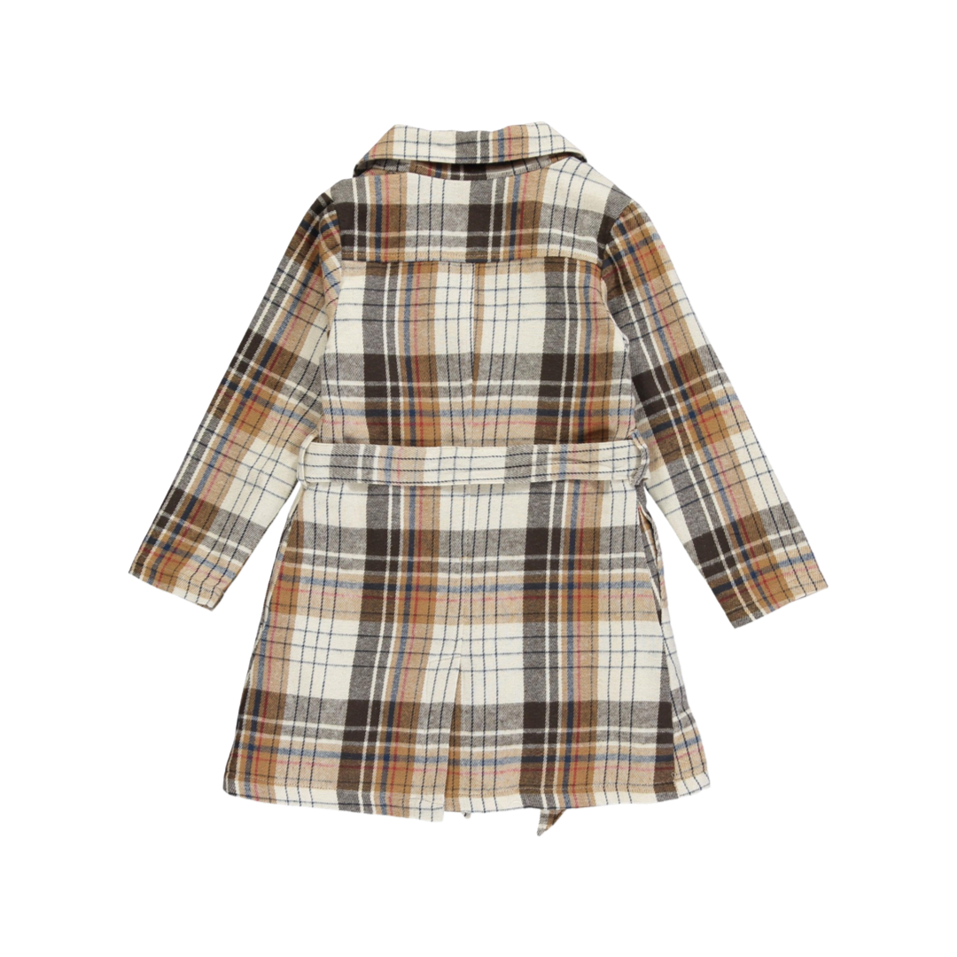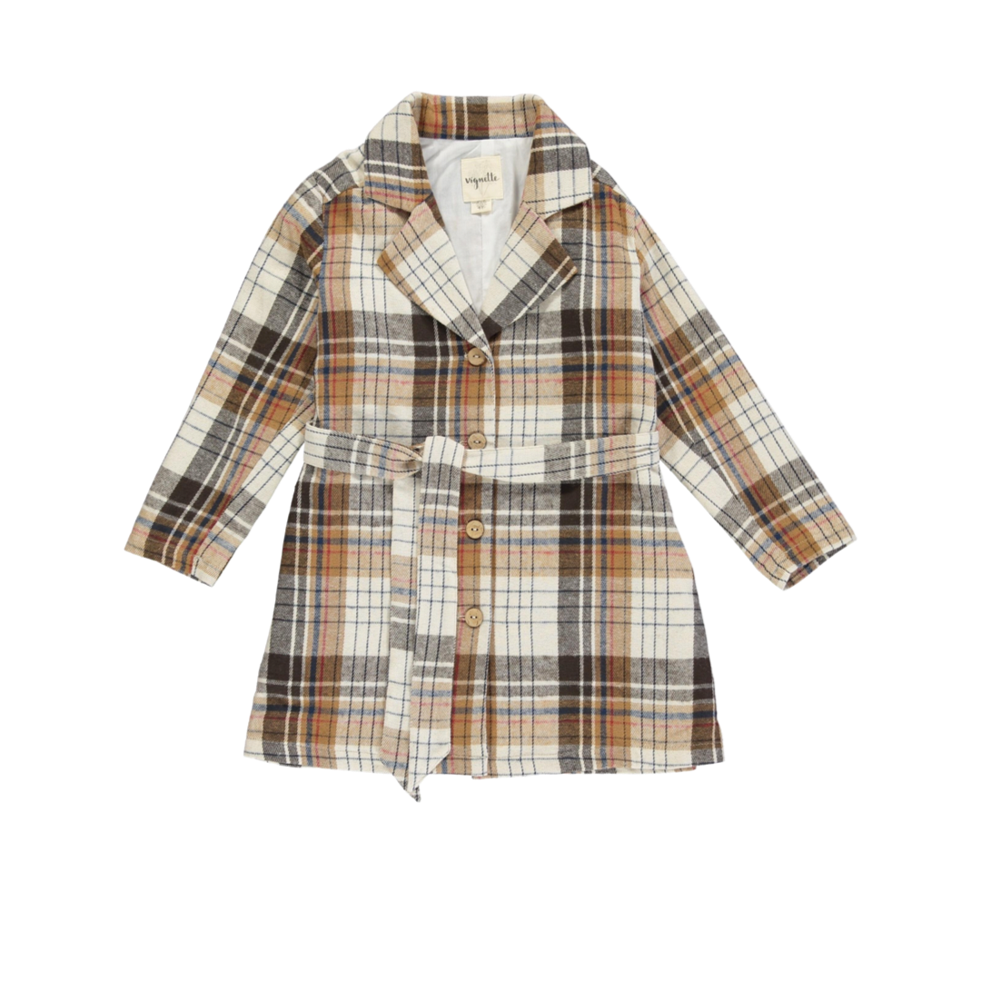 A perfect plaid coat with buttons and a tie front! The plaid also matches Lorelei Dress from Vignette and some of our Me and Henry plaid tops!