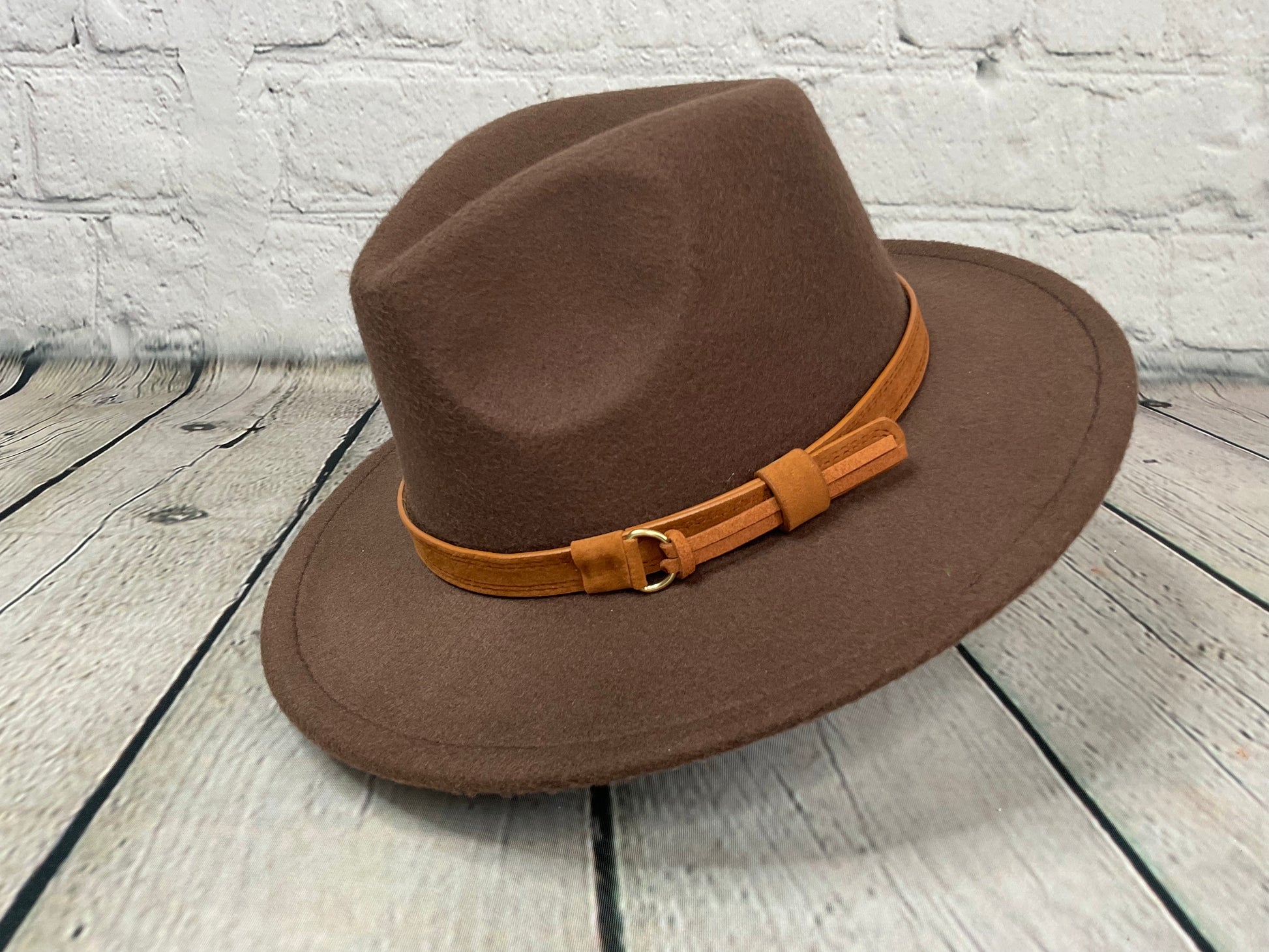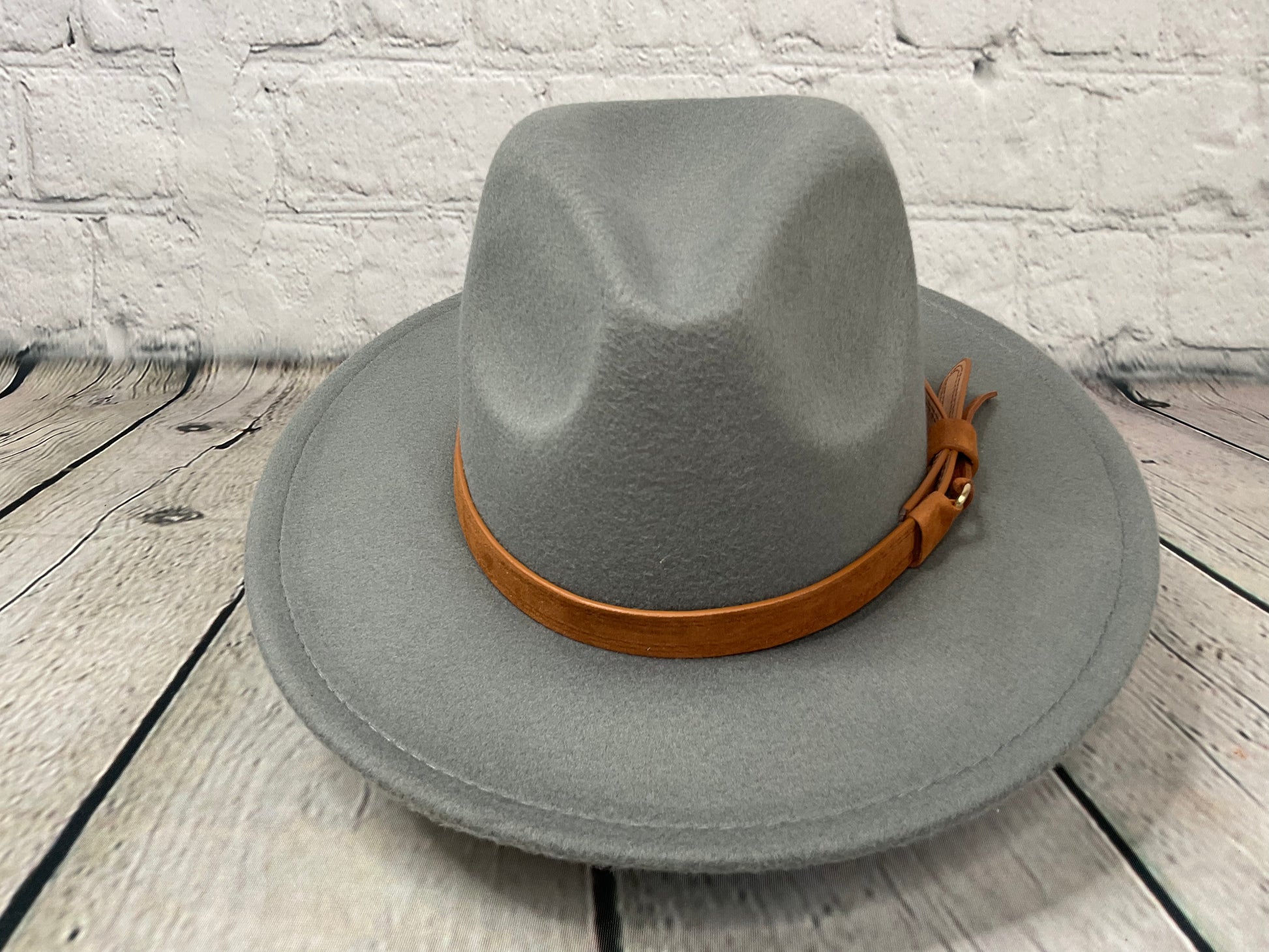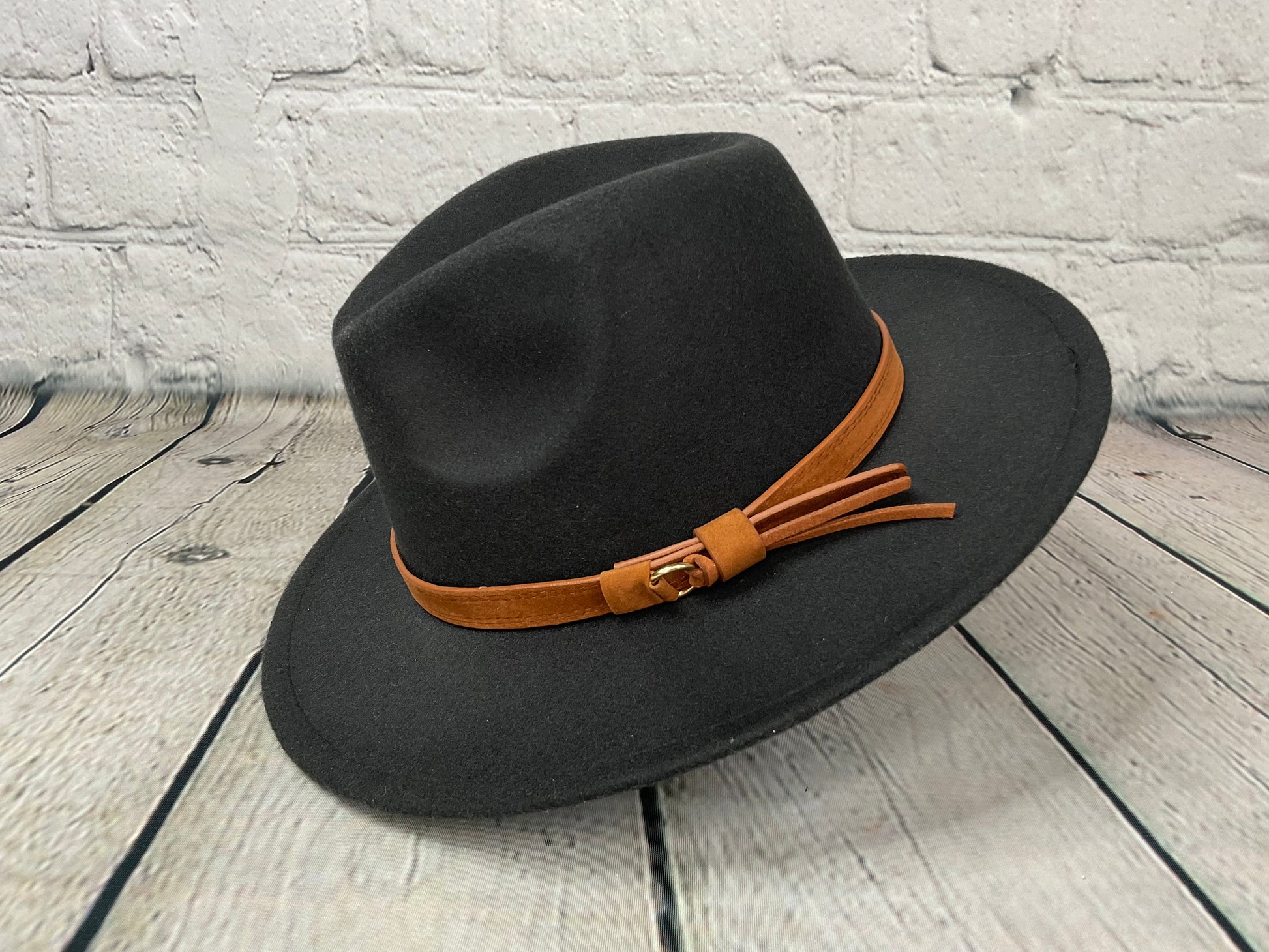 These unisex kids hats are 100% wool with a suede leather hat belt. Fits 21.5" head circumference with an adjustable hidden string on the inside brim of the hat for smaller heads.