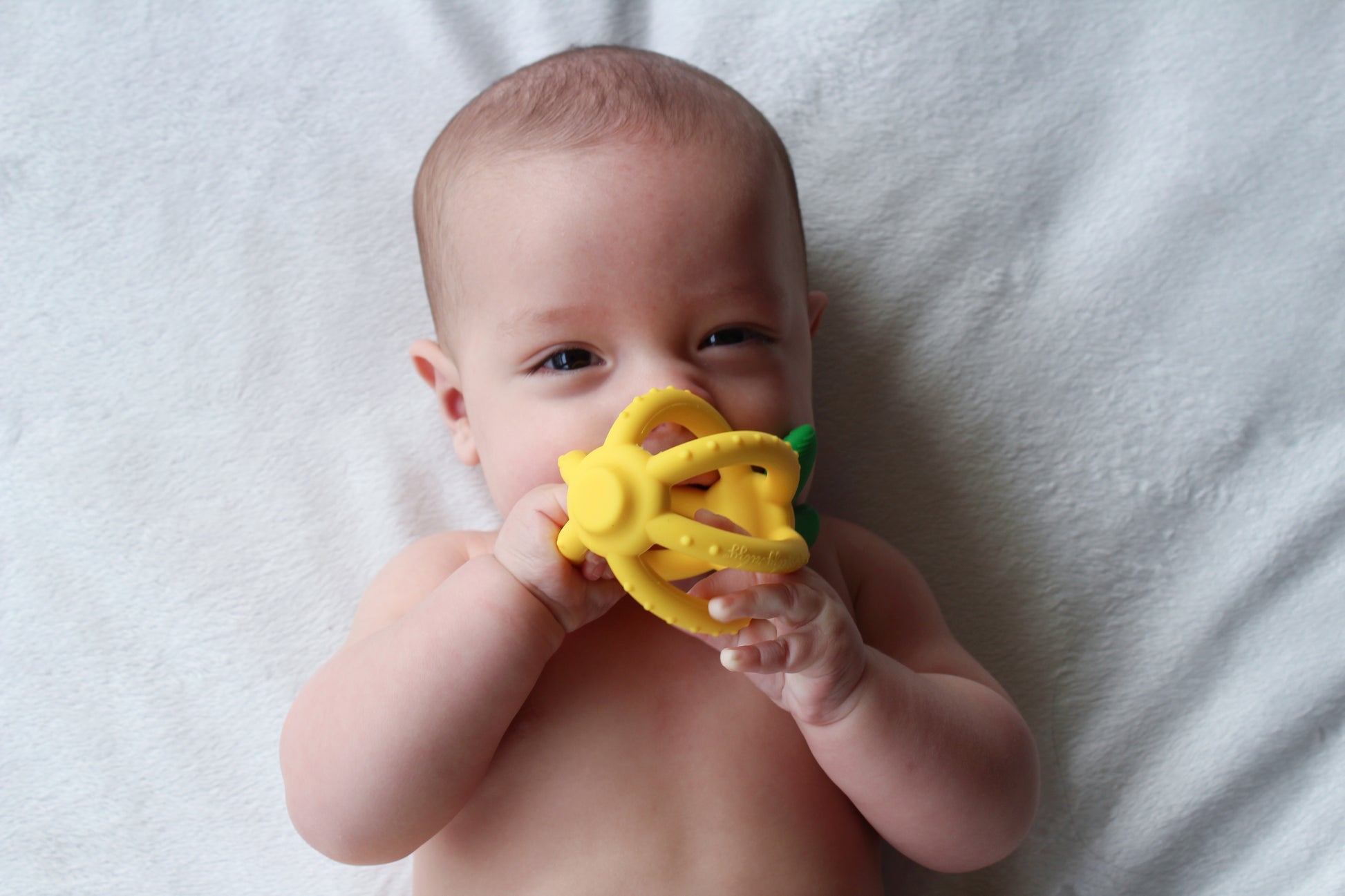 The teething ball is shaped like a lemon and is made of non-toxic food grade silicone. The open design makes it perfect for small hands to hold. Our lemon teething ball is soft on baby's gums and will make it easy peasy for your baby to get through teething pain-free!